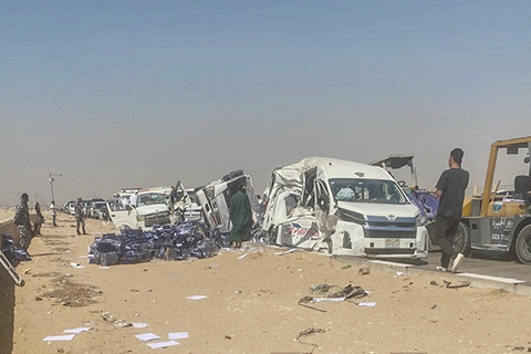 另據埃及媒體報道,事故發生在吉薩金字塔景區附近。當時一輛小型客車與對面行駛的多輛私家車相撞,造成人員傷亡。◇