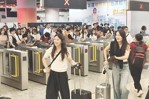中通社記者直擊多個跨境交通點和旅遊景點,發現人流量明顯較平日增加約兩倍,除了不少旅遊團,家庭旅遊也較此前的長假增加。