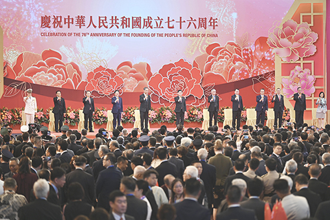 【香港中通社十月一日電】(記者 譚暢)十月一日,香港特區政府在會展中心舉行慶祝中華人民共和國成立七十六周年國慶酒會。行政長官李家超致辭表示,特區政府會主動對接國家發展戰略,發揮「一國兩制」下香港獨特優勢,著力做好三方面工作。