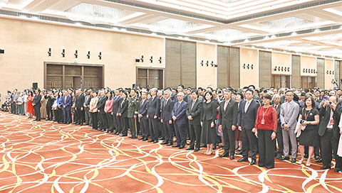 國慶酒會昨早九時三十分在中國與葡語國家商貿合作服務平台綜合體舉行。全國政協副主席何厚鏵、中央人民政府駐澳門特區聯絡辦公室主任鄭新聰、前任行政長官賀一誠、外交部駐澳門特派員公署特派員劉顯法、解放軍駐澳部隊政治委員林慶華、立法會主席高開賢、終審法院院長宋敏莉、行政會委員、立法會議員、特區政府官員、澳區人大代表、政協委員及各界人士等約一千三百二十人出席。