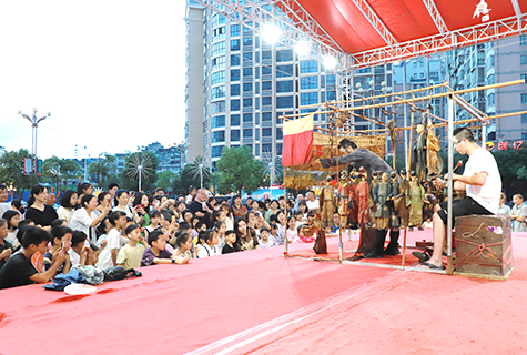 一方小小的舞台上,陣陣敲鑼打鼓聲中,一根根細繩牽起,手指躍動間,木偶在藝人手中靈動如生,一招一式皆具韵味。