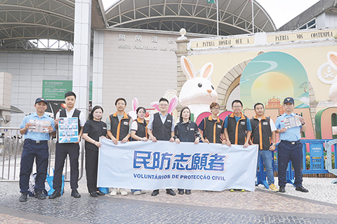為加強公眾防災意識,警察總局聯同消防局、澳門保安部隊高等學校及民防志願者,到關閘及橫琴口岸一帶開展了防風宣傳。宣傳隊伍向市民和旅客派發宣傳單張,並講解本澳防風措施及相關準備。