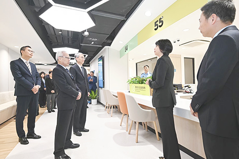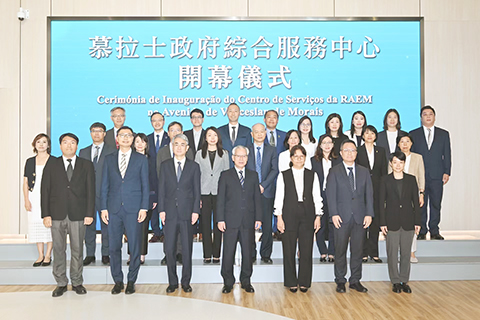 慕拉士政府綜合服務中心昨日上午十時三十分舉行揭幕儀式,行政長官岑浩輝在行政法務司司長張永春陪同下主持儀式,其後並參觀服務中心,聽取駐場部門領導主管和工作人員的介紹。