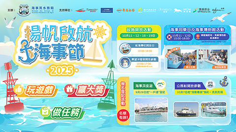 海事節亮點之一的公務船開放參觀,海事及水務局安排拖輪「東望洋號」及水文測量船「水文五號」分別於十月十一和十八日停靠媽閣碼頭供市民登船參觀,參觀預約系統由十月七日中午十二時起於活動專頁內開放,名額有限,先到先得。此外,市民即日起可於「一戶通」報名參加「海事深度遊」活動,十月十八至十九日的航班報名期至十月十三日,截止後將進行抽籤。