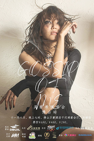 「DBUIL冠名贊助:吳若希《Gossip of Me》演唱會」佛山站,將於11月8日晚上7時正在佛山萬豪酒店千燈湖宴會廳•尚梯館隆重舉行,票價分別為人民幣680(含合影福利) / 480 / 280三種,訂於8日(星期三)中午12時正開始在《大麥網》和《攜程平台》公開發售。