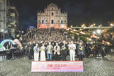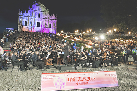 由文化局主辦、澳門樂團有限公司承辦的「月滿三巴夜2025」中秋音樂會,於10月6日8時及9時在大三巴牌坊舉行。澳門中樂團於世界遺產景點奏響一系列洋溢中秋韻味的經典樂章,吸引眾多市民旅客駐足聆賞,在璀璨夜色中感受文化傳承的瑰麗奇景及圓月溫情。