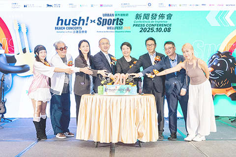 「hush!沙灘音樂會x城市運動節2025」新聞發佈會於10月8日在路氹美獅美高梅維天閣舉行,文化局局長梁惠敏、美高梅中國控股有限公司總裁及執行董事馮小峰、旅遊局代局長程衛東、市政署文康及公民教育廳代廳長龐筱韻、海事及水務局海事服務處劉社敬代處長等主禮,文化局副局長鄭繼明、美高梅品牌策劃高級副總裁廖穎琦、美高梅公共及社會事務高級副總裁王如茵,以及一眾資深本澳樂隊及運動導師代表等出席。會上邀請本澳樂隊「英美超市」進行演出,以及「hush!品牌聯乘」合作單位「水桶王」、「頹爆貓工作室」與「塞安古體育用品」展示為今屆活動設計的聯乘文創產品。