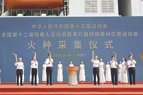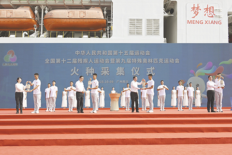 【特訊】十月九日,在我國自主設計建造的首艘大洋鑽探船「夢想號」的見證下,第十五屆全國運動會和全國第十二屆殘疾人運動會暨第九屆特殊奧林匹克運動會(下稱「十五運會和殘特奧會」)火種採集儀式在廣州南沙舉行。