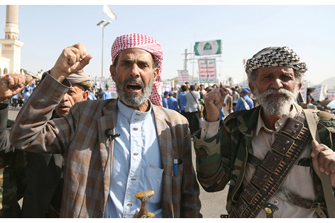 ◎ 十月十日,也門首都薩那民眾舉行遊行集會,聲援加沙並慶祝加沙停火協議生效。(新華社發 穆罕默德.穆罕默德 攝)