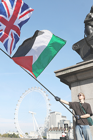 在倫敦泰晤士河畔,高舉巴勒斯坦國旗的挺巴民眾形成壯觀場面。另一方面,反示威群眾則揮舞以色列國旗、大聲播放音樂,與挺巴遊行隊伍對峙。倫敦警方表示,雙方在現場爆發零星肢體衝突,「少數人被捕」。