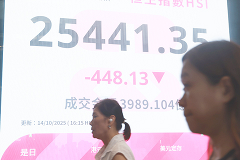 【香港中通社10月14日電】(記者 梁嘉軒)中美關係仍處於緊張狀況,拖累港股14日繼續下挫。恆生指數與恆生科技指數連跌7個交易日,其中恆生指數累計跌幅近7%,當日跌448點或1.7%,收25441點。
