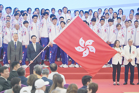 【又訊】十五運會下月九日至二十一日在廣東、香港和澳門舉行,行政長官李家超昨日下午向香港特別行政區代表團授旗。