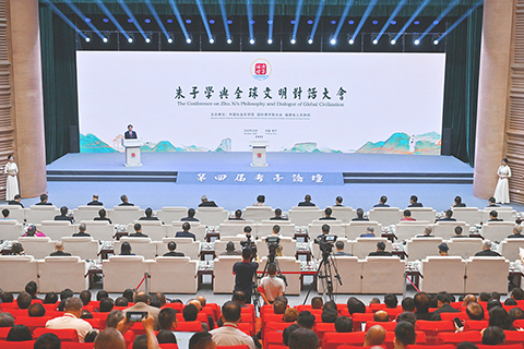 ◎ 這是十月十八日拍攝的「朱子學與全球文明對話大會」開幕式現場。當日,由中國社會科學院、國際儒學聯合會與福建省人民政府共同主辦的「朱子學與全球文明對話大會」在福建省南平市舉辦。大會以「發揚朱子文化時代價值,促進全球文明互鑒共生」為主題,設置開幕式與主旨報告、第四屆考亭論壇平行分論壇、主題圓桌沙龍、「書院文化」學術考察暨采風傳播等四大主題活動。(新華社記者 姜克紅 攝)