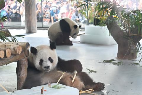 拉薩天堂草原與布達拉宮 以「光復」為名 名稱中的台灣光復印記 花蓮立霧溪堰塞湖清淤屢遇險 仍維持紅色警戒 吉林兩大濕地 迎來候鳥遷徙高峰 首次融入仿生人臉元素 宇樹科技發佈H2仿生機器人 「北京溫度」破零創下半年新低 「國寶迎全運」廣州市舉行 2025-10-20 03:31:00 ◎ 十月二十日,在第十五屆全國運動會開幕倒計時二十天之際,「國寶迎全運」廣州動物園新大熊貓館開館活動在廣東省廣州市舉行。經過一段時間的觀察適應期,兩隻大熊貓新成員「久久」「友友」正式亮相。圖為大熊貓「久久」(前)和「友友」吸引遊客。(中新社記者陳楚紅 攝)