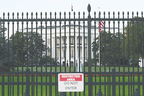 ◎ 10月21日,美國聯邦政府「停擺」已經整整三周。圖為當日在美國華盛頓拍攝的白宮。(新華社記者 李睿 攝)