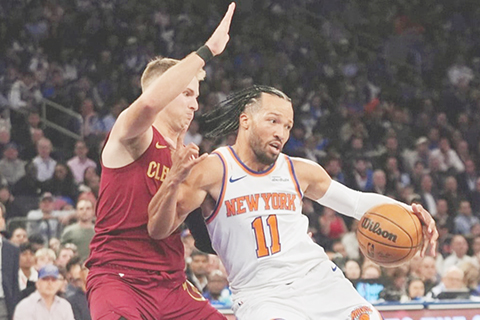 NBA常規賽,紐約人在主場以119:111擊敗克里夫蘭騎士,新賽季旗開得勝。紐約人上半場控制比賽節奏,布歷治第一節就4投全中獨得10分。次節騎士由莫比利及當奴雲米曹掀起反擊,但仍然無法限制紐約人的攻勢,半場落後50:65。換邊後,騎士重拾手感,全隊以超過六成命中率單節射入37分,追成87:87平手進入最後一節。紐約人的唐斯第四節開段接連得分,帶領球隊打出一波12:0高潮,再次拉開分差。騎士未有放棄,最後兩分鐘一度追至只落後5分,不過關鍵時刻出現失誤,被阿奴諾比「偷波」後反擊「入樽」,殺死比賽懸念。最終紐約人在麥迪遜花園主場取得賽季首場勝仗。數據方面,紐約人全隊一共搶到48個籃板,比對手多16個,阿奴諾比有24分14籃板,唐斯19分11籃板,一同做出「雙雙」,謝倫賓遜23分。騎士的當奴雲米曹射入全場最高31分,莫比利取得22分8籃板。◇