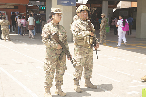 ◎ 秘魯總統何塞.耶里十月二十一日晚宣佈,秘魯首都利馬等地進入為期三時天的緊急狀態,自二十二日零時起正式生效。該措施旨在規劃、實施並執行聯合行動,以堅決應對當前影響全國的犯罪浪潮。圖為二十二日,在秘魯首都利馬,軍人正在巡邏。(新華社發 瑪麗安娜.巴索 攝)