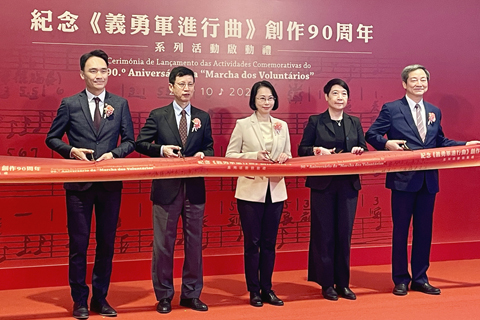 啟動儀式昨日下午三時半在澳門文化中心大堂舉行,文化局局長梁惠敏致詞表示,九十年前,在中華民族面臨生死存亡的危急關頭,《義勇軍進行曲》應運而生。田漢先生以八十四字歌詞發出「不做亡國奴」的怒吼,聶耳先生以四十六秒激昂旋律點燃民族抗爭的火種。