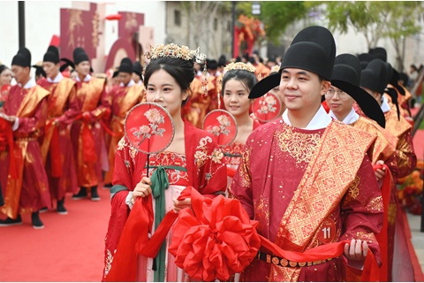 航拍重慶長壽湖:碧波萬頃 風景如畫 福州:百對新人辦中式傳統婚禮 長江之濱南京三橋濕地「粉色海洋」引客來 江南金秋 浙江杭州金色稻田呈現「豐收畫卷」 台燕子口堰塞湖或潰決 官方提示勿入下游河道 中國加快無人智能 作戰力量及反制能力建設 習近平:推高質量發展 重點是加快高水平科技自立自強 習:「十五五」是夯實基礎 全面發力的關鍵時期 習近平:以國內循環的穩定性 對沖國際循環的不確定性 中國通過修改環境保護稅法 擴大揮發性有機物徵稅範圍 中國修改海商法 不斷充實涉外法律工具箱 福州:百對新人辦中式傳統婚禮 2025-10-29 03:30:00 ◎ 十月二十八日,二0二五年「有福之州溫暖榕城」集體婚禮在福建福州舉行。百對新人身著唐制華服,依循傳統儀軌舉行唐制婚禮,在現場來賓的祝福聲中,開啟幸福生活的嶄新篇章。圖為新人們準備進場。(中新社記者 呂明 攝)