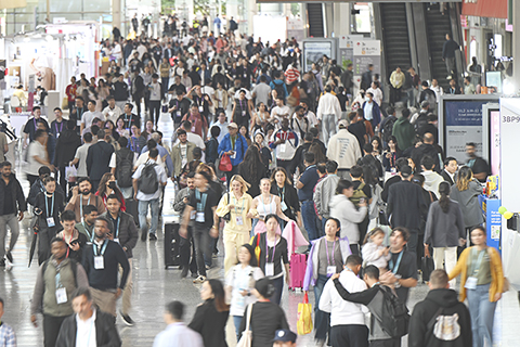 第一百卅八屆廣交會閉幕 2025-11-05 03:30:00 ◎ 十一月四日,在廣州舉辦的第一百卅八屆中國進出口商品交易會(廣交會)閉幕。據廣交會組委會統計,本屆廣交會共有來自二廿三個國家和地區的超卅一萬名境外採購商到會,現場意向出口成交二百五十六億五千萬美元。圖為廣交會展館內客流如織。(中新社記者陳驥旻 攝)
