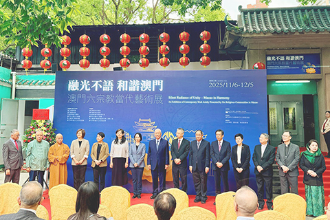 【專訪】由澳門文化局合辦、澳門文化發展基金贊助,澳門佛教總會、澳門道教協會、巴哈伊教澳門總會、澳門天主教文化協會、聖公會澳門傳道地區、澳門伊斯蘭文化交流促進會主辦的「融光不語和諧澳門──澳門六宗教當代藝術展」,昨日起在澳門普濟禪院(觀音堂)舉行,展期至下月五日。