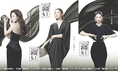 無綫壓軸台慶劇《新聞女王²》雖然下周一(10日)晚八點半才於翡翠台首播,但由於劇集於周三(5日)已於內地優酷平台率先播出,連續兩日引爆熱話,,劇集總監製鍾澍佳接連在社交平台報喜,指《新聞女王²》優酷熱度先後兩天衝破7,000及7,500。翻查資料,《新聞女王²》第二日熱度值最高達到7,067,比起第一季開播的第二日熱度峰值高出19.7%,證明網民對劇集喜愛度有增無減。至於熱度榜排名方面,《新聞女王²》亦分別進據了《貓眼》都市網絡劇熱度榜第2名及抖音娛樂榜no.1等,成績斐然。宣傳海報方面,除了早前發布的「眾神之戰」系列,還有「職場」及「Fashion」系列。在「職場關係」系列宣傳海報,文慧心(Man姐)(佘詩曼飾)的陣形有劉艷(王敏奕飾)、馬家明(吳業坤飾)及飛爺(鄧智堅飾);古肇華Kingston(黃宗澤飾)的陣形有張家妍(李施嬅飾)、潘志傲Ivan(何廣沛飾)及梁景仁(馬國明飾)。