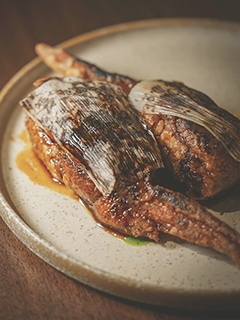 在CENSU內既可小酌,亦能滿足正餐需求,這份西班牙燉飯分量十足,兩人清空略具難度,建議至少三人享用。店家選用香港本地的三黃雞,一雙霸氣交疊的雞腿成為擺盤亮點,皮香肉嫩,連雞胸部位也毫不乾柴。更值得讚嘆的是那香氣四溢的飯底,先經帶子高湯浸潤再受雞油的加持,粒粒分明,外香內潤,加上蔥花的提香,完全沒有停下來的意欲。