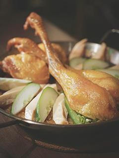 手羽(雞翼)飽滿得像六歲時的蘋果肌般,塞滿和牛與豬肉末融為一體的餡料。一口咬下肉汁橫溢,再搭配照燒醬的香甜與山椒賦予的微妙辛辣,堪稱足以叱吒中環的雞翼!