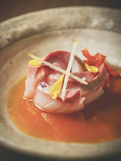 油甘魚—蕃茄柚子醋,半風乾番茄