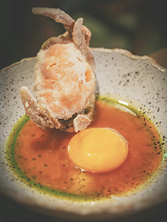 軟殼蟹—三重芝士慕斯,香辣甜酸醬◇