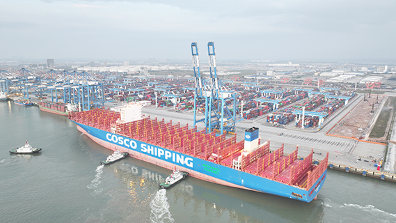 20萬噸級集裝箱船泊北部灣港 楊陳 楊煜航 林鈺超
