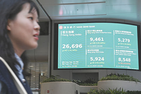 【香港中通社11月11日電】(記者梁嘉軒)港股11日反覆向上,恆生指數全日收26696點,升47點或0.2%。恆生科技指數報5924點,升8點或0.1%。國指升18點或0.2%,報9461點。大市成交額2102.31億港元。