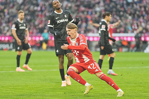 ◎ 拜仁隊倫納特.卡爾在十一月二十二日於慕尼黑舉行的德甲比賽對陣費雷堡隊中,進球後慶祝。(美聯社片/馬蒂亞斯.施拉德)