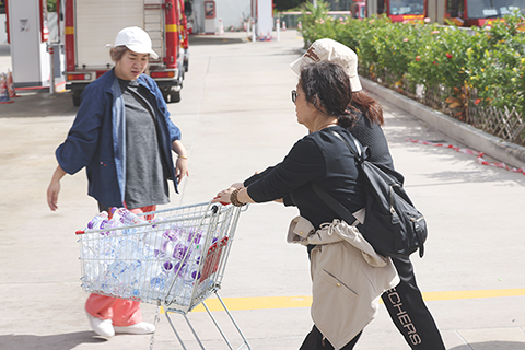火警發生後政府開設了八個臨時庇護中心,撤離的災民得到暫時安置。一夜過去,在中華基督教會馮梁結紀念中學的院子,堆滿了衣服、瓶裝水等物資。一家便利店老闆驅車三十公里送來一箱水果並笑說「我知道不缺物資,但想著天氣乾可以多吃水果。」