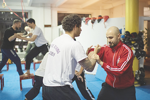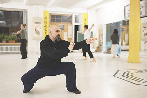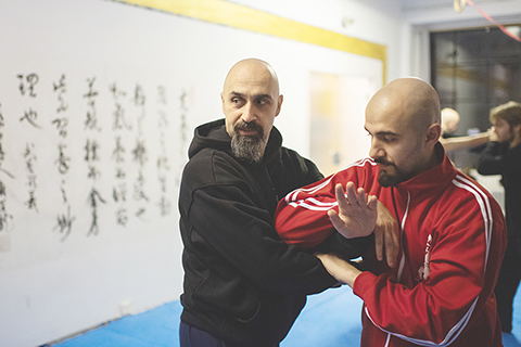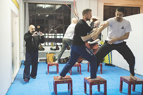 十一月十三日,在德國柏林「玄」武術館,遊理漢(左)指導學員練習。四十八歲的遊理漢原名伊斯梅特.希梅特,居住在德國柏林,能流利使用中文。遊理漢一九九一年開始學習中國武術,二000年首次赴華「拜師學藝」,二00六年起他在德國開始全職教授中國武術。他在柏林創辦的武館設有太極拳、八卦掌、形意拳等教學項目,吸引不同年齡段的學員前來練習。在他的課堂裏,武術不僅是一套技法,更是一種生活方式和思維方法。