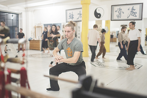◎ 十一月十三日,學員在德國柏林「玄」武術館練習武術(鏡像)。(新華社記者張豪夫 攝)