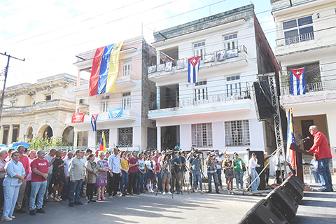 ◎ 十二月六日,在古巴首都哈瓦那,委內瑞拉駐古巴大使奧蘭多·馬內羅在聲援委內瑞拉的集會上發表講話。古巴各界民眾近千人當日在首都哈瓦那舉行集會,譴責美國針對委內瑞拉的軍事威脅與制裁封鎖,並重申對委內瑞拉政府的支持。 (新華社發 華金·埃爾南德斯攝)