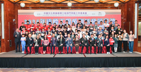【特訊】由中國文化常識達標工程澳門特區工作委員會舉辦的「二0二五中國文化常識達標工程系列活動」頒獎禮,於前(七)日上午假澳門美高梅大宴會廳舉行。教育及青年發展局教研人員發展處處長黃達財、中央人民政府駐澳門特別行政區聯絡辦公室教育與青年工作部一級主任科員于子青、澳門理工大學語言及翻譯學院國際漢語教育學士學位課程主任杜志軍、澳門公職教育協會副理事長陳小儀、澳門天主教學校聯會理事蔣燕兒、美高梅人力資源發展及培育副總裁陳來源以及「達標工程」主任委員陳虹,副主任委員鄭洪光、朱振榮,顧問李沛霖、何少金等出席,場面熱鬧。