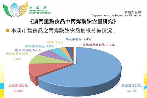丙烯酰胺是食品加工過程中產生的可致癌物,國際間對食品中丙烯酰胺的含量情況日益重視,並制訂相關管控措施,對含量過高的食品進行回收。為此,市政署開展《澳門重點食品中丙烯酰胺含量研究》,於本澳市面採集重點食品,同時充份考量本地烹飪飲食文化,食品樣本覆蓋穀物及其製品、動物性水產品、咖啡及其製品、馬鈴薯及其製品、肉及肉製品、食用菌及其製品、茶及茶製品、食糖等八大類,合計六百七十份樣本進行檢測,並結合食物消費數據進行分析,以了解本澳市售食品中丙烯酰胺的含量水平,掌握相關基礎數據以作為本澳現有食品安全措施的有效性判斷及後續管控優化的科學支撐,並為業界與市民給予針對性建議。