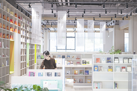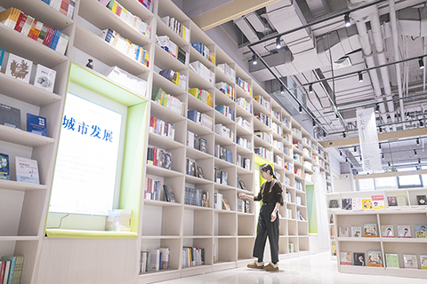 ◎ 十一月廿五日,工作人員在文華社區樊登書店整理書架。(新華社記者伍志尊 攝)