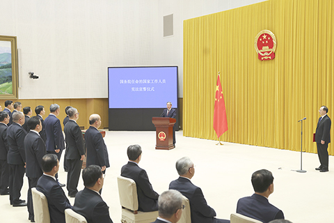 ◎ 十二月十九日,國務院舉行憲法宣誓儀式。國務院總理李強監誓。(新華社記者 黃敬文 攝)