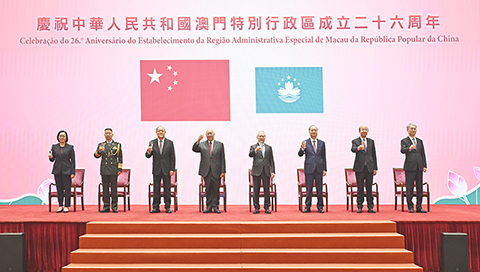 【特訊】特區政府昨(二十)日舉行慶祝中華人民共和國澳門特別行政區成立廿六周年招待酒會。行政長官岑浩輝致辭時表示,二十屆四中全會擘畫了國家發展的新藍圖,中央「十五五」規劃建議對澳門未來發展作出了重要戰略部署,為特區發展提供了新的巨大機遇和政策動能。澳門將遵照習主席的重要指示,更加積極主動對接國家發展戰略,制定好、實施好澳門特區「三五」規劃,在服務強國建設、民族復興的新征程中,實現自身更好發展。