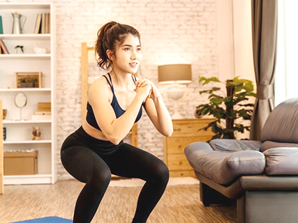 首先,雙腳與肩同寬站立,將身體重量平均分布在腳跟與前腳掌,身體微微前傾。在下蹲時膝蓋朝第二至第三腳趾方向,下蹲至大腿與地面平行後站起。