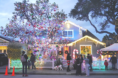美國加州聖卡洛斯「聖誕巷」 2025-12-26 03:30:00 ◎ 每年十二月,美國加州三藩市灣區聖卡洛斯的一條街道都會被居民裝扮成「聖誕巷」,吸引人們前來感受聖誕氛圍。圖為十二月二十四日,在美國加利福尼亞州三藩市灣區聖卡洛斯,人們在「聖誕巷」觀賞聖誕裝飾。(新華社記者 吳曉凌 攝)