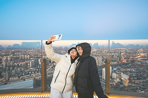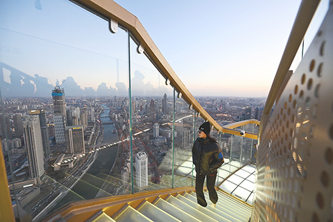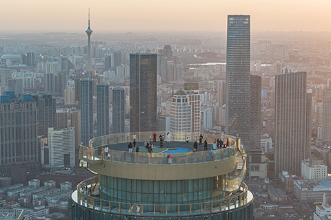 近日,位於天津市和平區津灣廣場核心位置的津灣雲頂高空觀景台開始運營。遊客可以登上三百米高的樓頂,俯瞰天津中心城區。