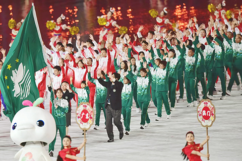 開幕式在廣州的廣東奧林匹克體育中心舉行,十五運會組委會執行主任、行政長官岑浩輝在開幕式上致辭表示,本屆全運會首次由粵港澳三地聯合承辦,是推動大灣區融合發展,展現「一國兩制」制度優勢的生動實踐,也是促進澳門融入和服務國家發展大局的重要契機。岑浩輝又代表澳門特區政府,向中央政府的信任與支持致以衷心感謝,向國家體育總局、廣東省及香港特別行政區政府,以及所有為本屆全運會付出辛勤努力的運動健兒、工作人員和志願者,致以誠摯的感謝和崇高的敬意。