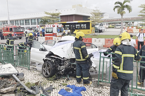八月四日清晨,友誼大馬路近水塘看台有私家車撞欄,女司機和前座乘客一度被困。涉事私家車車頭凹陷,欄杆和指示牌被撞毀。消防員救出7名傷者,包括5男2女,全部傷勢嚴重。其中2名男性送往鏡湖醫院搶救,其餘5人送往山頂醫院搶救。