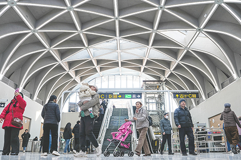 ◎ 十二月廿七日,市民在濟南軌道交通4號線泉城公園站進站乘車。當日上午,隨著濟南軌道交通4號線首發列車平穩進站,國內首條穿越泉域岩溶區地鐵正式通車運行。為適應特殊的地質環境,在地鐵規劃設計初期,濟南進行了大量的前期勘探工作。經過反覆論證,確定了「繞避升抬」原則,儘量讓運行線路繞開泉水敏感區,避開地下含水層,抬升地鐵地下埋深,守護以「泉城」為名片的濟南泉脈。此次與濟南軌道交通4號線一同開通的還有8號線和6號線東段,濟南軌道交通運營總里程增加到二百四十八公里。(新華社記者 朱崢 攝)