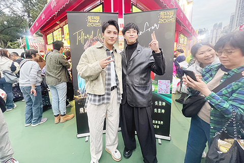 吳業坤與黃庭鋒近日積極為《萬千星輝頒獎典禮2025》展開拉票活動,展現對獎項的熱切期待,二人更希望一同獲得「飛躍進步男藝員」大獎。兩人行程緊湊,昨日前往工展會進行快閃活動,現場派發楊枝甘露與市民互動;隨後登上宣傳車爭取支持。前日則返回電視城,向同事派發鮑魚及湯包,在寒冷天氣中送上溫暖。