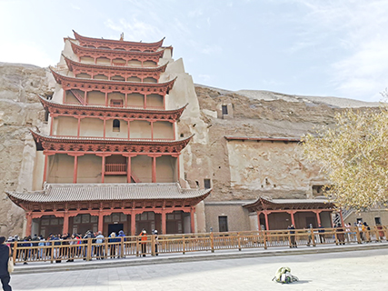 早上團隊由嘉峪關市出發,約經4小時車程抵達敦煌市。是值中午,先去享用豐富午餐,下午才去遊覽莫高窟。敦煌市位於甘肅省的西北部,河西走廊的西端,屬於國家歷史名城,也是絲綢之路上的重鎮,素以敦煌石窟及敦煌壁畫聞名天下,同時,也是莫高窟和漢代所築的兩座長城關隘,玉門關和陽關,以及長城遺址的所在地。